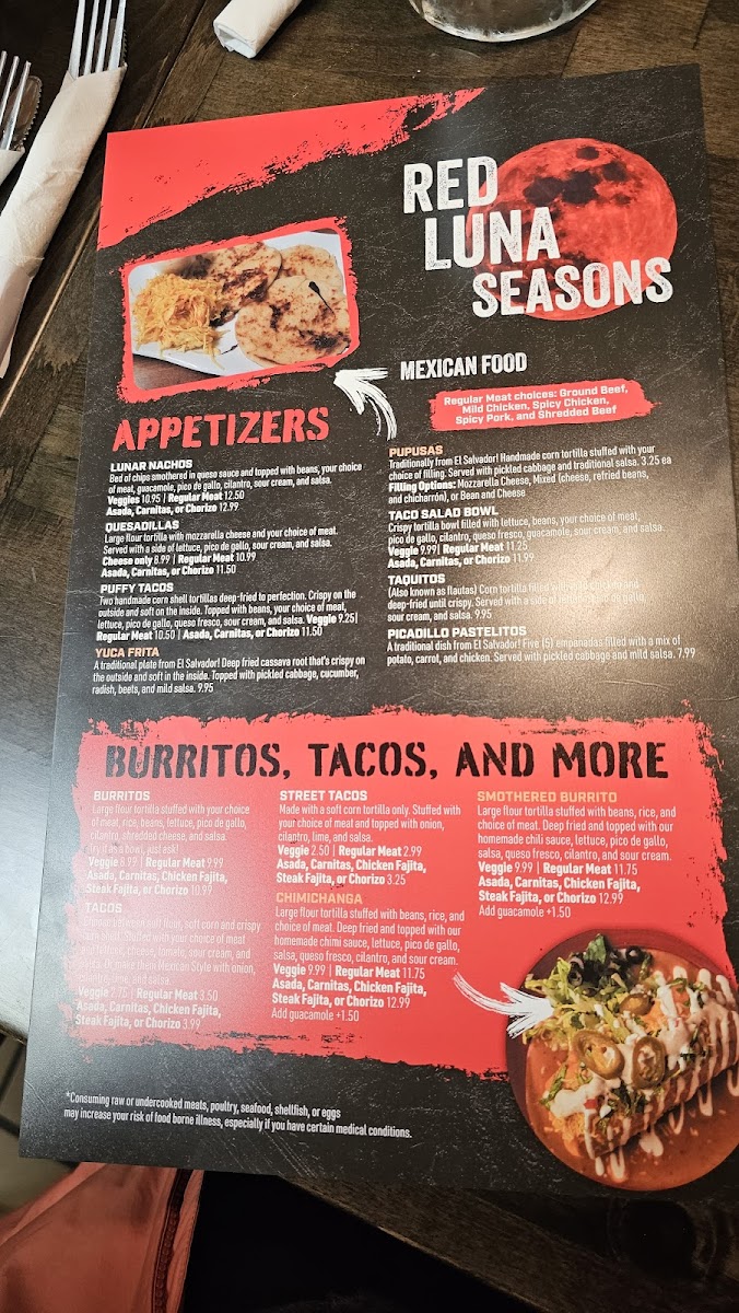 Introducing the menu at Red Luna Seasons, where culinary delight meets warm hospitality. Nestled in the heart of St. Paul, this gem promises an exceptional dining experience for all. Diners rave about their Birria tacos and burritos, noting the mouthwatering flavors and generous portions. The daily Friday fajita special is a must-try for those craving vibrant tastes and sizzling presentations.